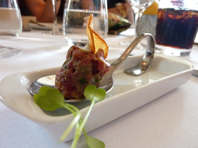 We started off the meal with an amuse-bouche of beef tartare with a touch of green onion.